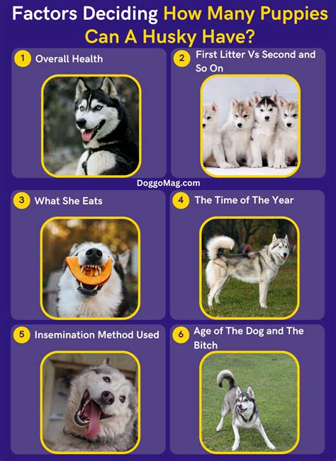 Several factors can influence the number of puppies a husky can have. One crucial factor is the age of the female husky. Generally, younger huskies tend to have smaller litters compared to older ones. Additionally, genetics play a significant role. If both the male and female huskies come from large litters, there is a higher chance of them having more puppies.