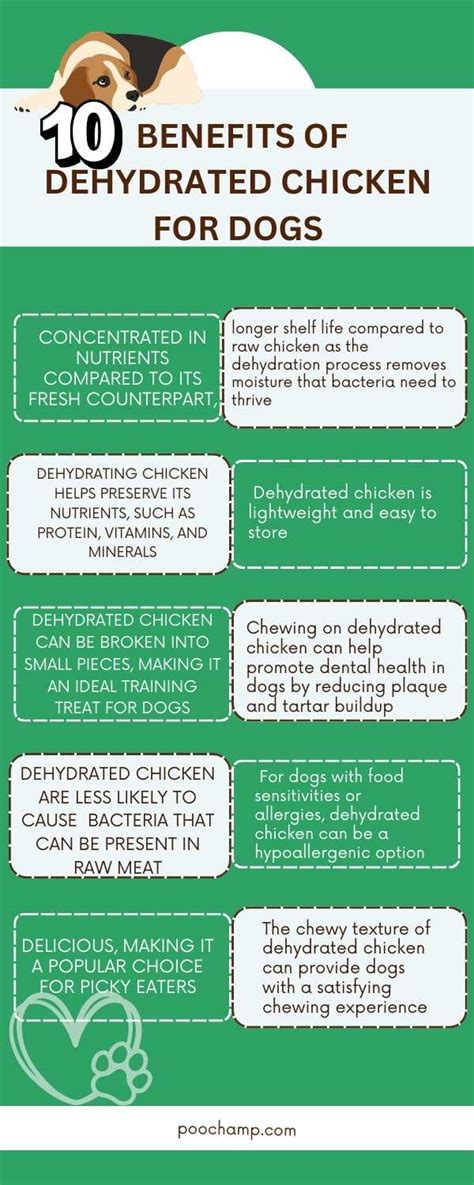 Although dehydrated chicken is a nutritious option, it is essential to practice portion control when feeding it to your dog. Treats should only make up a small percentage of your pet's overall diet, and excessive consumption can lead to weight gain or other health issues. Consult with your veterinarian to determine the appropriate serving size for your furry friend.